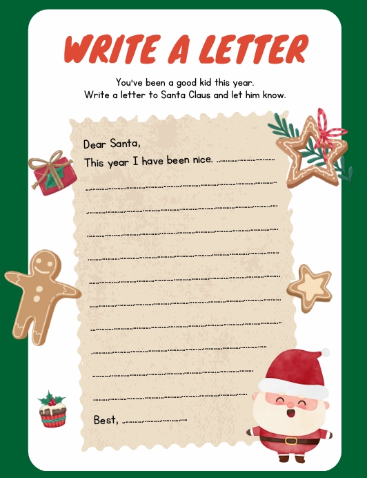 Letter to Santa Template – A sweet and simple printable letter for kids to write their Christmas wishes (complete with envelope-style design!).