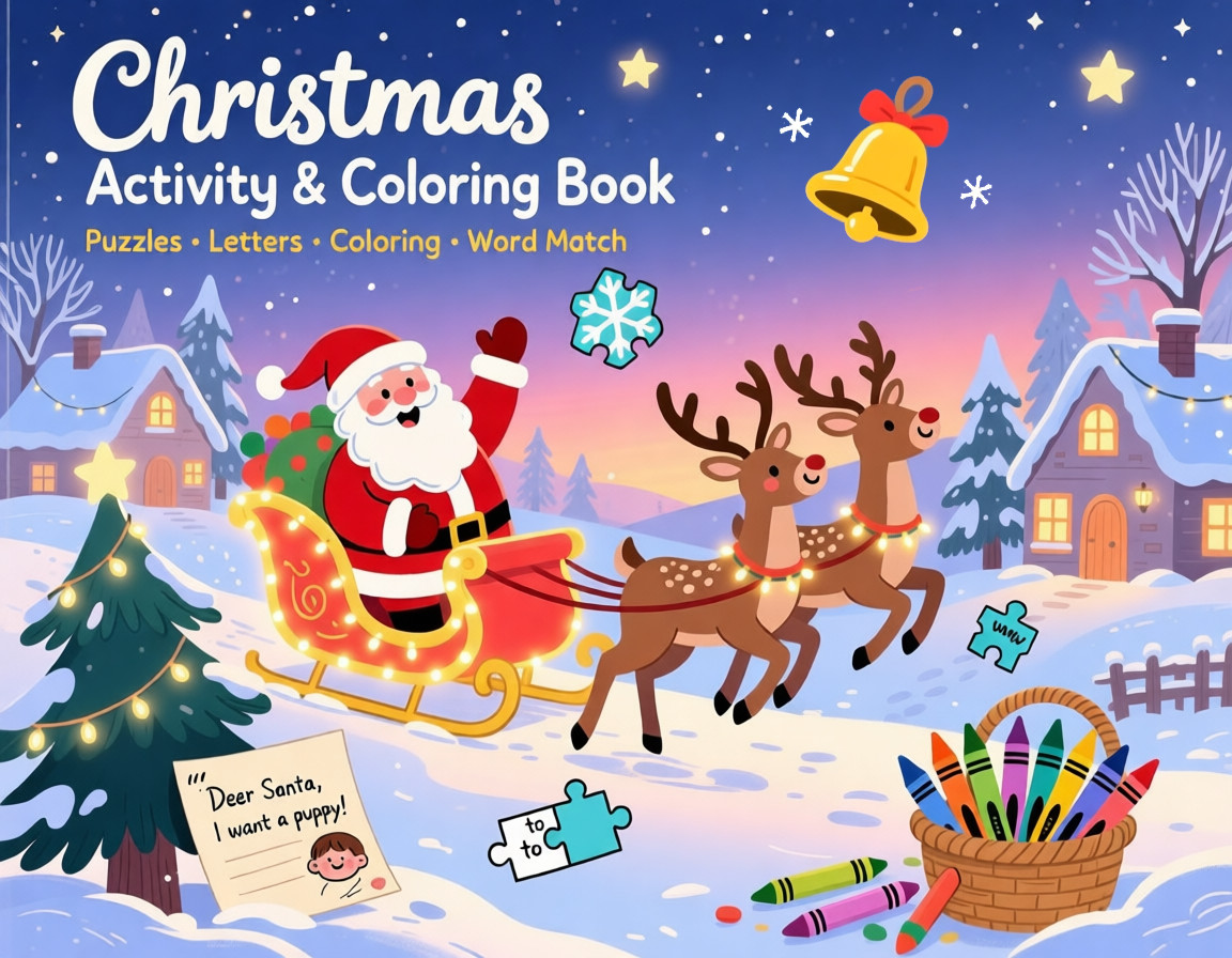 Get ready for holiday cheer with our Christmas Activity & Coloring Book—a jolly-packed PDF filled with festive fun for kids ages 3–10! Perfect for quiet time, holiday travel, or cozy nights by the fire, this printable activity book delivers screen-free entertainment that sparks creativity and learning.